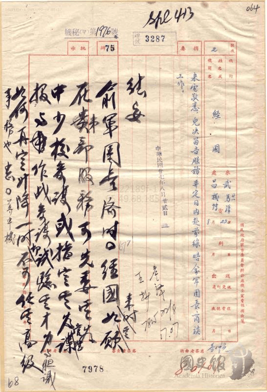 文稿、影視片斷相繼出事。吾人漸能 拼湊出一個相對完整的“經國先生”。以下我們略述經國生平。(1) 經國並沒在中國 受到過完整的學校教育。當然蔣中正重視中國文化也關心 經國的學習,所以在征戰之餘,也親自督導並時斷時續,敦請 當代學人如 吳稚暉作經國導師。但經國對中華文化可能缺乏系統性的研習,當留俄 12 年之後,於1937 年他攜家帶眷返國,嘗早嘲曰“回到了國門,屈指算一 算,能寫的中文字還不滿一百個”。 (2) 經國於 1925 年,年僅 15 歲,即志願赴俄留學。當時是第一次國共合作時 期,他經由中共元老的安排至莫斯科中山大學學習,最大的挑戰是學習俄 語。1927 年四月畢業,其後轉至蘇聯的軍事學校學習戰術、軍隊政治工作等。1929 年加入共產黨,其後體驗勞工生活。他曾下鄉務農,在西伯利亞 作過搬運工人,在冰天雪地的阿爾泰山金礦作過礦工。1935 年時,經 國已是一個堅定的共產黨員。他曾三度發文,公開批判 蔣中正反共。我們 需要瞭解的是,當年經國已 25 歲,但在蘇聯已 10 年了。同年他與蔣方良 結婚,育一男孝文。直到 1937 年 3 月 25 日攜家眷離蘇返國,當然經國 在蘇聯 12 年生涯,在其返國後的反共抗俄時代,是不公開的。年少的經 國在蘇聯 生活 12 年,身心受創是必然的。但他也深深瞭解共產國際,也 學到如何建立政工制度及運用秘密員警系統。(3) 經國於 1938 年參加工作並再次加入國民黨。蔣中正對經國在蘇聯長達 12 年而在回國半年後即參加工作並不放心。附上之“德安文檔” 可以說明。 日期為“中華民國二十七年(1938)八月二十二日”。蔣中正手書致當時 在德安指揮作戰的第三十六軍團長俞濟時將軍:經國來時如其願在本部服 務,可先委其為中少校參謀或 指定其為管理諜報與作戰參謀,試驗其才力 與膽識如何,再定升降,一時切不可任其高級職務也。中正。右方並有經 國手書“ 並定日內赴前線晤俞軍團長商談工作。” 按俞將軍系黃埔一期 畢業,曾親與一二八淞滬會戰,八十八師為蔣中正近衛,精銳之師,故蔣將 “貴”部之貴圈去改為”本”部,以明確兩人從屬關係。當然蔣中正付託其 嫡長子也應以親信部隊為宜。 事情發展並未如 蔣俞之安排及經國之承諾赴“前線”,因為當時江西省主 席邀經國為江西省政府保安處少將副處長,位高權重,經國做此選擇,也 是合情合理的。不過這也顯示出經國身為蔣中正長子,其軍職從少校到少 將,均是其囊中之物。經國在贛南頗稱職,天時、地利、人和又造成了經國于章亞若一段婚外情, 並育有章孝嚴、章孝慈雙胞兒。兩人自幼不得入蔣家之門,然自立自強, 學業有成,較諸經國與方良所育之孝文、孝武、孝勇,事業更可圈可點。 如今孝文、孝武、孝勇均早已去世,其子女亦不見 經傳。反而孝嚴之子, 蔣萬安方當選臺北市市長,頭角崢嶸。今日首次公開去頭寮經國陵寢祭奠, 百感交集,不禁拭淚!